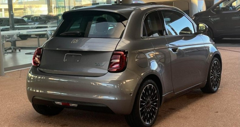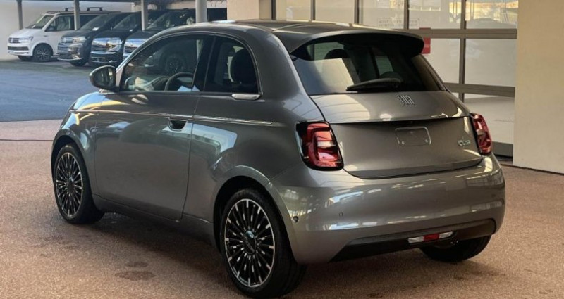 ======= options ======= peinture métallisée grande autonomie - batterie 42kwh ======= equipements de serie ======= 6 airbags 6 haut-parleurs abs antiblocage des roues avec répartiteur de freinage ebd alerte de franchissement de ligne appel d'urgence - ecall baguettes latérales chromées batterie mixte 42 kwh câble de recharge type 2 mode 3 (recharge wallbox & bornes publiques) capteur de pluie chargeur embarqué 11 kw (ac) climatisation automatique contours des vitres latérales chromés démarrage sans clé détails chromés : logo 500 sur calandre et logo fiat sur hayon détecteur de luminosité esp - contrôle électronique de stabilité avec hill holder feux diurnes à led frein à main électrique freinage d urgence autonome gestion automatique des feux de route feux de croisement instrumentation tft couleur 7 intégration apple carplay et android auto sans fil jantes alliage 17'' bicolores limiteur de vitesse pack confort pack tech peinture ice white planche de bord spécifique projecteurs avant full led infinity recharge rapide 85 kw (dc) reconnaissance des panneaux de signalisation régulateur de vitesse rétroviseur intérieur électrochrome sellerie premium soft touch ivoire services connectés seuils de portes chromés système uconnect 10,25 tapis de sol toit vitré panoramique vitres arrière surteintées volant avec commandes soft-touch bicolore nb. vitesses : 1 conso mixte : l/100