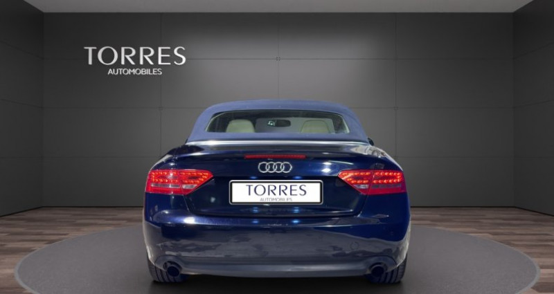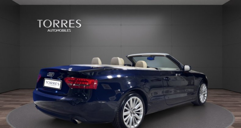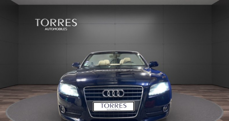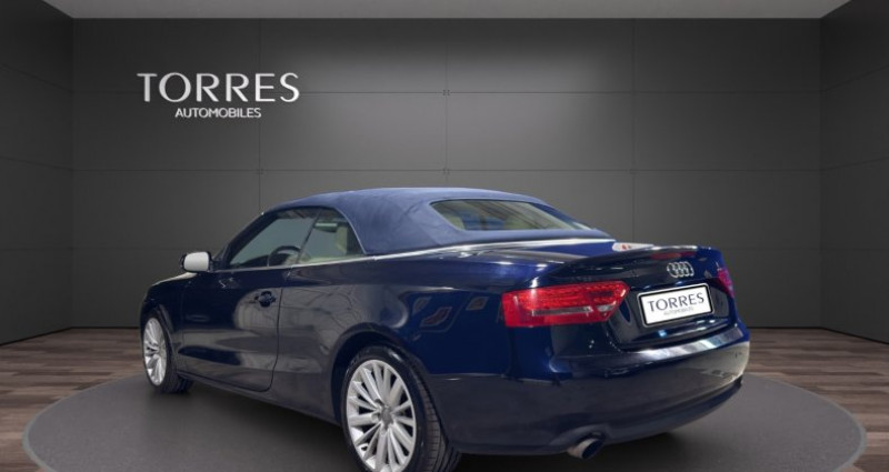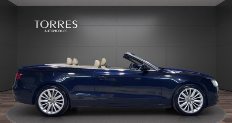torres automobiles est ravi de vous présenter cette audi a5 cabriolet 2.0 tfsi multitronic 211ch bleue marine capote bleue cuir beige. très belle et très rare véhicule en stock disponible sur rendez vous caractéristiques principales : -véhicule origine france -contrôle technique à jour -dossier d'entretien disponible et à jour -4 pneus neufs -véhicule garanti 6 mois -financement possible -reprise possible maintenances effectuées : -03/2012 à 26.397km -03/2013 à 42.673km -04/2016 à 59.545km -04/2018 à 73.904km -12/2019 à 87.772km -02/2025 à 113.218km Équipements et options : -sellerie : cuir milano -sièges avant électriques -commande de capote entièrement automatique -audi music interface -pack brillance -protecteurs de bas de marche avec revêtement aluminium -support à boissons de console centrale -equipement intérieur avec inserts finition aluminium hologramme -pack eclairage -roue de secours galette -rétroviseur int avec fonction électrochrome -appuie-lombaires av à réglages électriques -sound-system dsp, audi sound-system -support à boissons ar -miroir de courtoisie éclairé -jantes alliage léger 8,5x18 (15 branches, design étoile) -témoin contrôle pneumatiques -feux arrière led -projecteurs antibrouillard intégré -détecteur de pluie (essuie glace automatiques) -détecteur de luminosité ( allumage automatique des feux) -rétroviseur ext à réglages électriques, dégivrant et rabattable -régulateur de vitesse -volant 3 branches avec palettes -gicleurs de lave-vitre chauffants -supports isofix pour siège enfant -système d'assistance de conduite: feux de route automatiques pour plus d’informations ou un essai, contactez-nous !