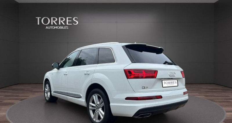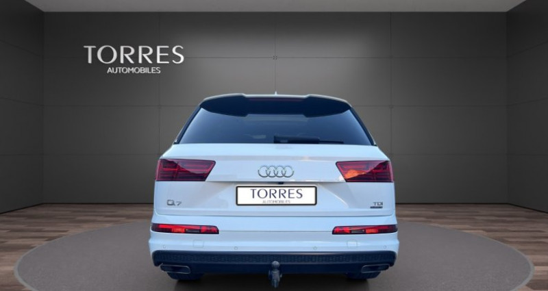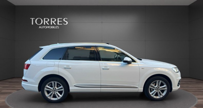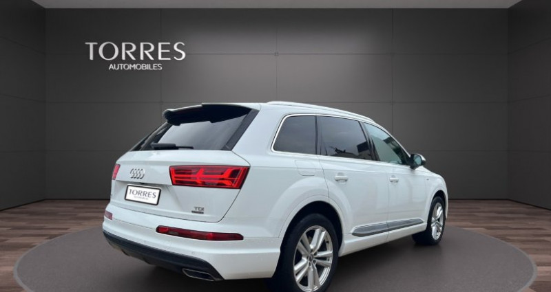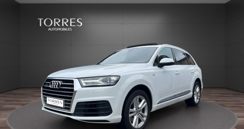 torres automobiles est ravi de vous proposer cette très belle audi q7 3.0 tdi 218ch quattro s-line tiptronic 7pl 2eme main française voiture en stock, visible sur rendez-vous. informations générales : -contrôle technique à jour -entretien complet audi disponible et à jour -véhicule sort de révision -4 pneus neufs -véhicule origine france -seulement 2 propriétaires -véhicule garanti 12 mois avec extension possible jusqu'à 36 mois sans vétusté pour 41€/ mois maintenances effectuées chez audi : -05/09/2017 à 15.462km -27/11/2018 à 38.584km -25/08/2020 à 69.201km -08/09/2022 à 97.886km -18/04/2024 à 128.414km avec 4 disques et plaquettes neufs equipements et options : -pack s-line -jantes aluminium -feux xénon/ led -attelage électrique d'origine -toit ouvrant panoramique -régulateur de vitesse -climatisation automatique -accès et démarrage sans clés -sellerie cuir/ alcantara -sièges avant électriques -ecrans d'origine audi pour sièges arrières -gps -connexion apple carplay/ android auto -bluetooth téléphone et médias -virtual cockpit -rétroviseurs rabatables électriquement -rétroviseurs dégivrants à réglage électrique -régulateur de vitesse -hayon électrique -pédales et reposes pieds en inox